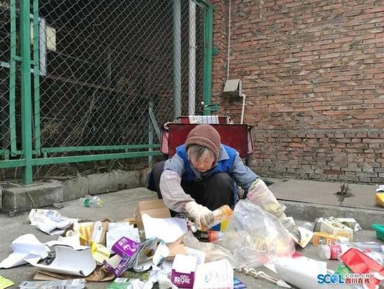 在同事林碧成看来,梁妈妈还有着极强的环保理念,“她会把翻出的垃圾放回垃圾桶,用随身带着的毛巾把垃圾桶沿抹得干干净净。担心滋生细菌,还会用水把废品上的污物先清洗干净,(她)家中没有一点异味。”学校教师叶楠介绍,梁有庆是广东人,以前是学校老师兼收发员,50多岁退休后不甘清闲开始在学校捡废品。