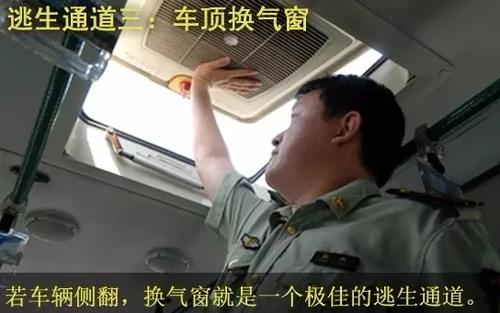 注:曾有新闻称,少部分乘客会在乘车后贪小便宜拿走车上的安全锤。小编要提醒所有乘客,禁止窃取客车、公交车等配备的安全锤等救生设备,你的“不告而取”,很可能要了别人的命! 3、还有一个救命出口:车顶天窗 车顶天窗上有一个红色开关,扭动之后,用力向上推,即可打开天窗逃生。