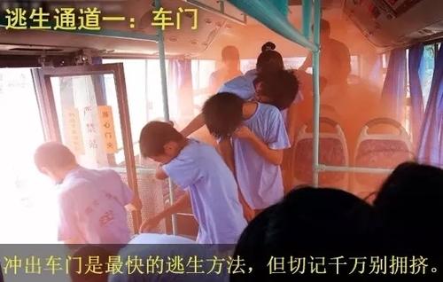 安全提示: 乘坐大巴、公交等客运车辆遇到突发意外时,逃生一定要组织有序,这样才能尽最大可能减轻伤亡、尽可能多的挽救更多乘客!其中,司机、售票员在第一时间站出来引导大家有序逃生非常重要。 1、最快的救命出口:车门 车门是最快的逃生通道,因为打开方便,出现意外时司机能第一时间控制车门打开。起火后,车辆电动门可能会因线路烧毁导致司机对车门控制失效,此时司机、乘客要用应急开关打开车门逃生。车门应急开关一般位于车门上方或司机座位旁,多为红色、扳手状。所以上车后要观察应急开关的位置。