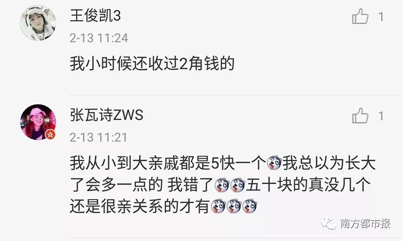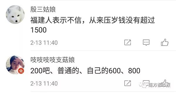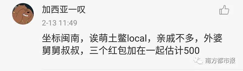 “福州旁边的小县城不多啊,小时候我姑固定给我,其他人就不一定了,加起来不超过1000元吧。我现在一般给500元或者300元,最亲的给几份,亲戚小孩太多了,给不过来……”福建的朋友小也说。
