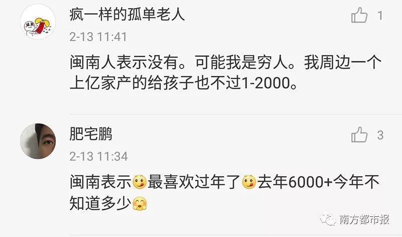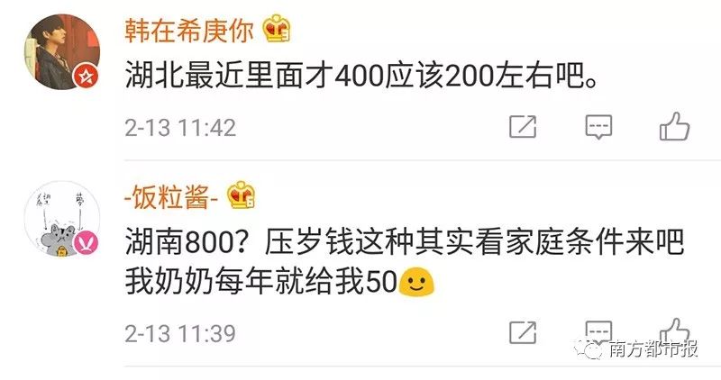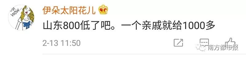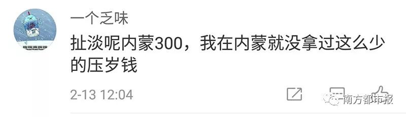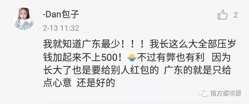 还好我们大海南没有垫底 有400大洋呢! 南瓜妹大概好多年没收到过年红包了 隐约记得小时候红包一般是50元100元 回到农村里,红包就是10元20元 一个年下来也能收到千八百块巨款啊! 心疼广东的网友