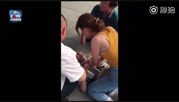 医科大学学生丁慧立即冲到老人身边, 为老人进行心脏复苏。