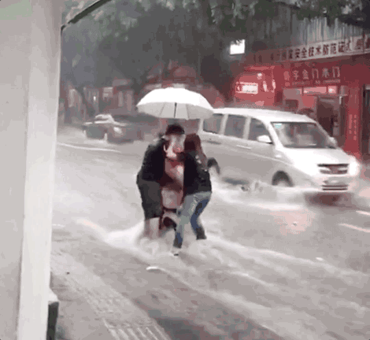 雨水湍急没过脚腕,车辆来往很是危险, 但这对情侣,真的很美。 4