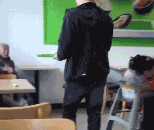 一位男士经过问询后, 自掏腰包给老人买了饭端上桌。 ▼
