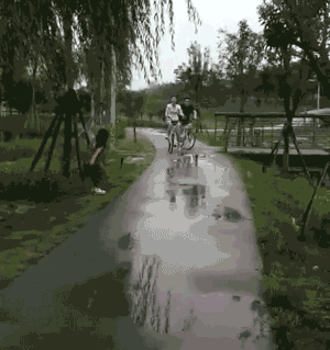 路边的男生毫不犹豫踏进水中将她们扶起。