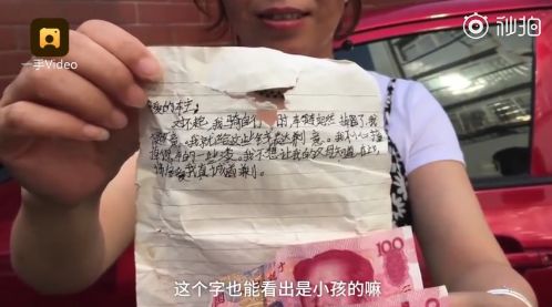 “对不起,我骑车不小心撞掉您车的一些漆…” 蓝女士在车上发现一份有200元的致歉信,