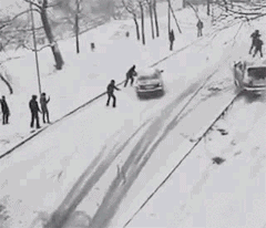 有人不顾安危,徒手救下了正在下滑的车子。 ▼