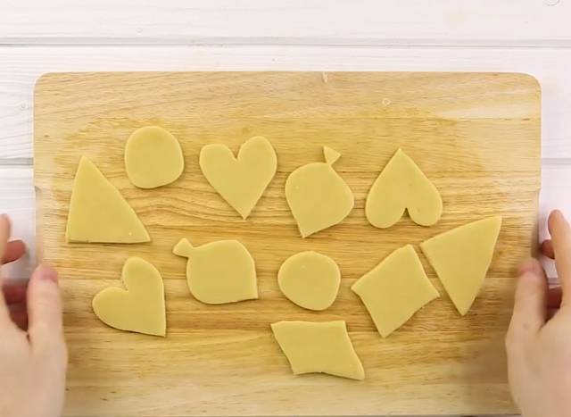 准备好发过的面团,用模具摁出来各款形态各异的糕点来~