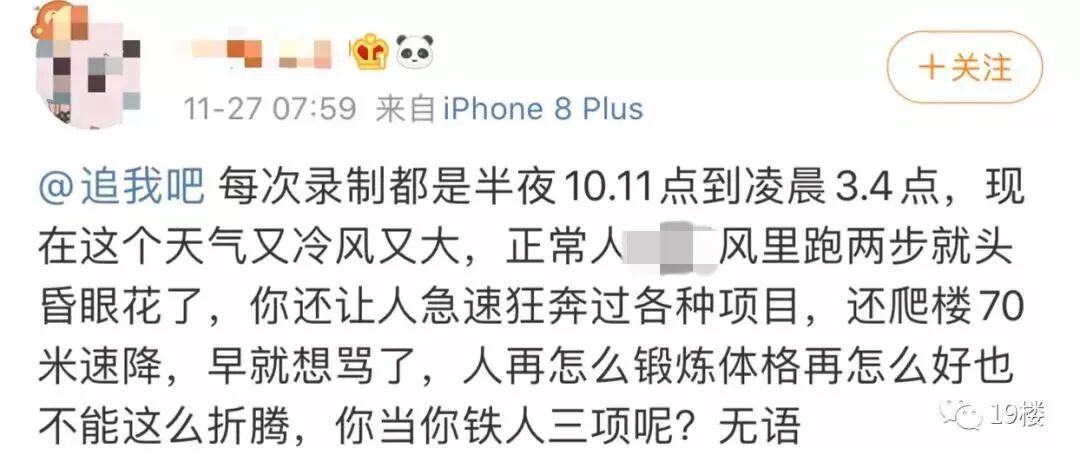 根据现场网友爆料,高以翔录制《追我吧》是从26日8时30分开始,一直持续到次日1时45分,工作时长近17个小时。