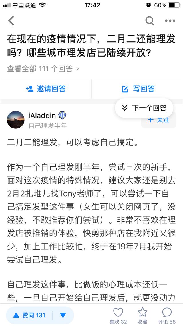 在家理发,还是去理发店?这是个问题。 再有两天就是二月二(2月24日)了。春节期间素有“正月不理发”、“二月二,剃龙头”的民俗传统。每年农历的“二月二”都承载着对新一年“从头开始”的美好愿景,也是美容美发行业最忙碌的日子。 然而,今年“二月二”正处在全国共同抗击疫情的关键时期。美容美发需要贴身近距离提供服务,为了不让碎头发到处飞,服务环境也较为封闭,一旦防控不善,消费者与从业者的身体健康都会存在风险。 随着企业复工和 “二月二”临近,以及消费者理发需求的逐渐增多,如何理发引人关注,有些消费者已经买好推子见到准备自己上手了。在知乎等平台,已经有网友热火朝天地讨论如何给自己理发,电商平台上,有些理发推子销量超过20万件。 是不是绝对不能去理发店呢?也不见得。2月20日,北京市商务局发布了《新型冠状病毒肺炎疫情期间美发美容行业经营服务指引》,提出要有序组织美发企业复工经营,满足疫情防控条件的美发美容店可以对外营业。不过,也建议疫情期间暂停提供面部美容服务。 那么,在理发店如何保护消费者的健康安全呢?指引表示,各美发美容企业要为门店和员工准备好体温检测器、口罩、消毒液等防护物资。 所有门店及办公场所每日营业前必须进行场所、设施、设备等消毒处理,保证经营场所空气流通,定时对空调系统清理滤网、对进出风口进行消毒。 顾客接受服务过程中应全程佩戴口罩,非必要情况不得摘除。 员工在为顾客提供服务的过程中要全程佩戴口罩,并尽量避免与顾客聊天。口罩应及时更换,使用后的口罩应妥善收集处理,不得随意丢弃。 保持工位间安全距离,避免人群聚集,每个工位的服务面积不小于2.5平方米,座椅间距不小于1.5米。 剪刀、梳子、推子等理(剪)发工具应一客一用一消毒。毛巾、围布等公共用品应一客一换一消毒。 顾客在服务完毕后落在座椅、地面的头发必须一客一清扫一消毒,统一收集到塑胶袋内并扎紧袋口后再处理。 摘掉门帘,在保持室内温度的情况下,手动大门尽量保持开启状态,避免反复触摸造成的疾病传播风险。劝导顾客彼此间保持1米以上距离,避免人群过度拥挤。 此外,所有员工每日上岗前、下班后要做好自身消毒、清洁。工作服保持清洁卫生。推广预约服务,减少入店人数。顾客到店当天,企业员工应提前电话了解顾客健康状况,如有发热、干咳等症状的顾客,应提示取消当天预约。未预约直接到店的顾客,要做好信息登记,登记好顾客姓名、联系电话等信息。 指引还提出,对于拒绝戴口罩、测体温的顾客,应婉拒其入店;遇到发热、干咳等症状的顾客可拒绝其入店。有条件的门店可为顾客提供一次性鞋套、服装罩袋、卫生湿纸巾、消毒凝胶、消毒酒精等防护物品。 2月21日,北京市消协者协会也发出倡议,建议美容美发行业经营者加强疫情防控,在确保防控措施有效落实的基础上有序复工,开展经营活动。 尤其重要的是,以往二月二消费者都会扎堆到理发店,动辄排队好几个小时,今年如果还这样扎堆,很容易引发聚集性传染风险。因此,北京消协提出消费者应避免在“二月二”当天扎堆理发,尽量不要选择烫染等时间过长的美发服务。并建议已经复工的经营者实行预约消费,合理安排接待人数,杜绝消费者扎堆等候的情况。