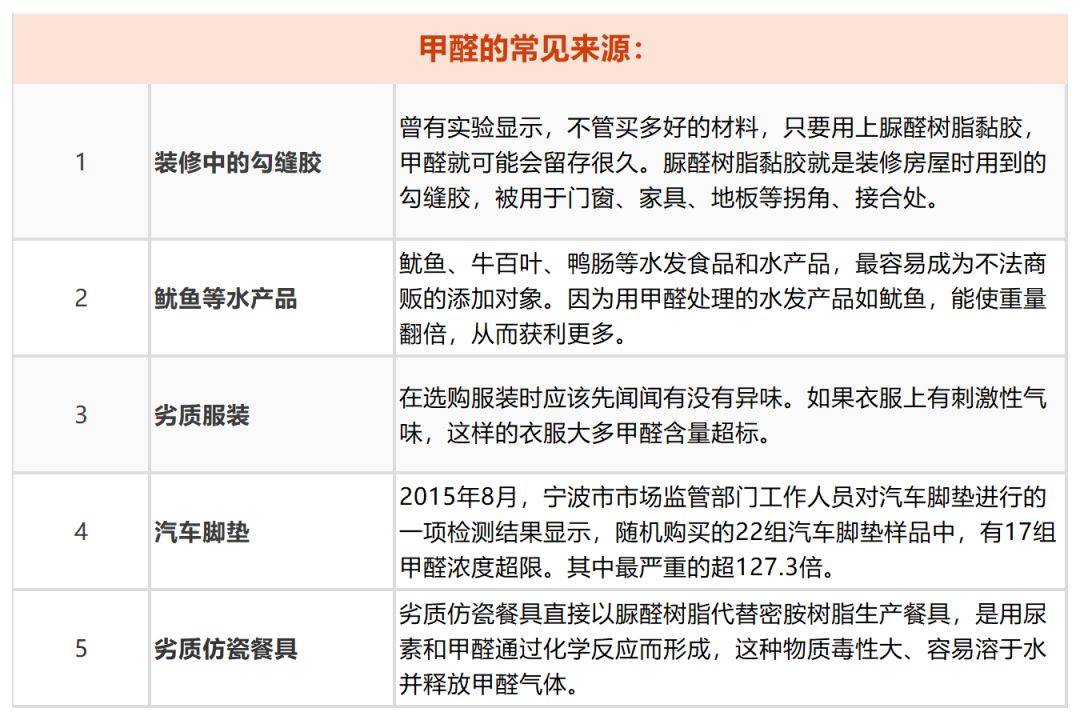 亚硝酸盐进入体内会和胃内的蛋白分解物结合,形成致癌物亚硝胺。 四、 甲醛:致癌致畸!