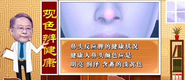 王鸿谟教授介绍,在面部,鼻头反映脾的健康状况,健康人的鼻头应该是明亮、润泽而含蓄的淡黄色。如果脾有问题,鼻头的颜色也会出现相应的变化。