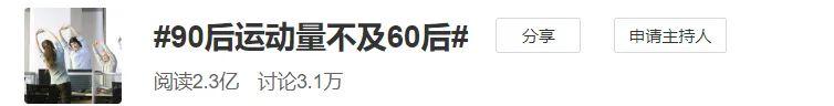 报告称,90后是所有年龄段中最不爱运动的。微信日均步数超过5000步的90后社畜,仅有51%。  用网友的话说,“我的运动量还不如我妈”。