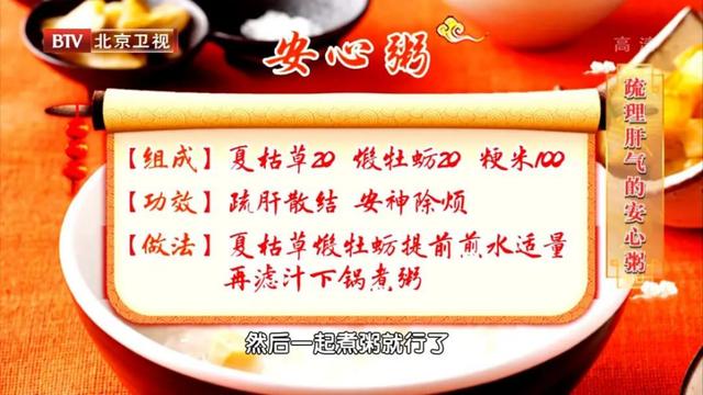 “调理肝气”推荐饮食——安心粥 肝气不舒,还会出现胃脘胀满、痛及两胁、情志不畅、急躁易怒、吞酸嗳气的情况。可以喝一碗“安心粥”来调理,有疏肝散结、安神除烦的作用。