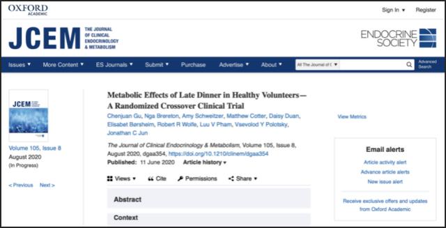 为了更好的探究晚餐和健康之间的联系,2020年7月11日《临床内分泌与代谢杂志》(JCEM)上的一项研究,就找了20个人,做了这样一个试验……