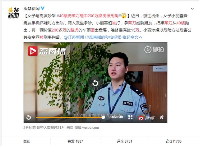 就是这一个小小的举动,却让她付出了惨重的代价。 海口市美兰区法院以危险方法危害公共安全罪,判处陈某有期徒刑4年。 在庭审现场,陈某流下了悔恨的的泪水。 判刑重了吗?没有。 司机正在开车,一车人的性命都在他手中,你冲上去就是一耳光,那司机一个踉跄,很有可能车毁人亡。 大家还记得重庆公交车坠江事件吧,不就是因为乘客和司机口角,乘客抢夺方向盘,最后全车人一起坠江,无一生还。 有句话说的好:成年人的世界,什么情绪什么命。 这些年,社会上的戾气越来越重,有时候到了匪夷所思的程度。 比如,前段时间,杭州女子小丽因为怀疑男友在外面有女人冲进厨房操起一把菜刀向男友扔了过去。 男友一躲,菜刀从窗口径直掉了下去。