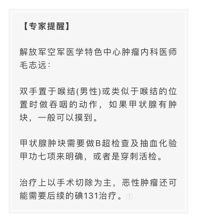 首先,颈部正中发现肿块,可能是甲状腺引起的。