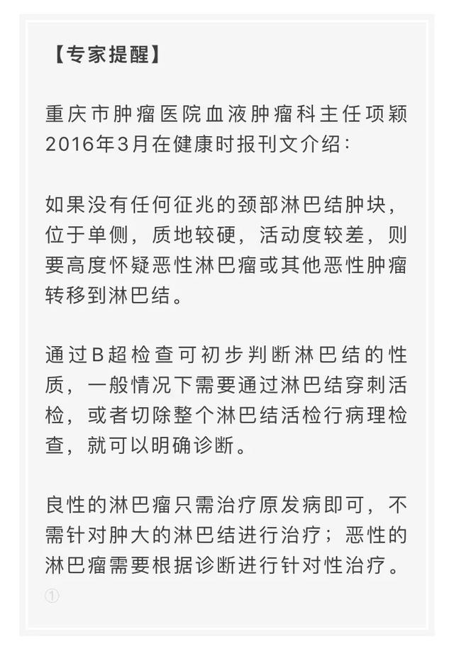 其次,颈部两侧发现肿块,这个部位正是淋巴结,淋巴结肿块也分为良性和恶性。