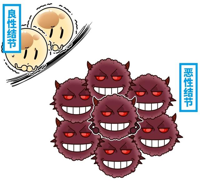 有些结节为了继续生存 会把自己伪装成了“两不像”的样子 让人难以区分 所以为了保险起见 最好去医院做个“穿刺活检” 让专业医生给你辨别良性恶性 良性只需复查,恶性建议尽早手术