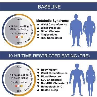 人生的矛盾在于:拥有一颗减肥的心 ,奈何长了一张吃货的嘴。 令人欣慰的是,加州大学临床试验找到了一个“快乐饿肚子”的方法: 每天将进食时间控制在10小时内,可以在一定程度上减重,并有利于代谢健康。这一研究发表在《细胞·代谢》上。 受访专家 中国农业大学食品科学与营养工程学院副教授 范志红 中南大学湘雅医院营养科副主任医师 刘菊英 每日限时进食,就能减轻体重 限时进食(Time-restricted feeding, TRF)其实是间歇性禁食(Intermittent fasting, IF)中的一种。 间歇性禁食,是指有时正常吃,有时少吃。间歇性禁食主要可分为两大类: 隔日禁食:即在一段时间内,有1~2天不摄入任何热量或仅摄入较低热量,次日恢复正常饮食,例如5:2禁食法(每周有两天禁食)、吃-不吃-吃(Eat-Stop-Eat)禁食法等。 每日限时进食:每天将进餐时间限制在数小时内,而在剩余时间内禁食,例如16/8(每天在8小时内摄入一天所需的所有能量,其余16小时不再摄入热量)或14/10进食法。 相比于“饥一天饱一天”的隔日禁食,“每天努力一点点”的限时进食似乎更容易被人们接受并坚持下来。 这项研究纳入了19名平均年龄59岁的代谢综合征参与者,其中包括13名男性与6名女性。 在研究开始后的3个月里,参与者被要求继续使用这一程序记录自己的饮食习惯并将自己的饮食时间控制在每天10小时之内。不过,在10小时之外饮水不受限。 除此之外,研究并不要求参与者改变自己的饮食习惯,也不需要额外运动。 研究持续12周之后发现,参与者的体重减轻了3.30kg(P = 0.00028),体重每周降低275g,属于安全的范围内。 研究期间虽然没有要求减少进食量,但参与者的热量摄入减少了大约8.62%。研究人员推测这可能是由于三顿饭变得密集之后,人们就吃不下那么多美食了。 除此之外,研究期间参与者的睡眠持续时间也稍有延长,平均延长了12.45分钟;睡眠质量有所提高,周末早晨感到睡饱了的参与者从69.88%增加到了88.16%。 适度“挨饿”带来6个好处 既往的一些研究,证实了适度“挨饿”为人体健康带来的益处。 01 减轻体重 轻断食方法已经被《中国超重肥胖医学营养治疗专家共识》纳入为正规减肥方法之一。 每周坚持2天轻断食,可降低肥胖者的体重、体脂率、腰臀比,多数人在科学合理地限制饮食一周后体重都会有所下降。 02 降低“坏胆固醇” 发表在《美国临床营养学杂志》上的研究表明,轻断食可降低“坏胆固醇”(低密度脂蛋白胆固醇)和甘油三酯水平,却不影响“好胆固醇”(高密度脂蛋白胆固醇)水平。 03 有助控制血糖 一项刊登在《世界糖尿病杂志》上的研究指出,轻断食是一种安全的饮食干预,利于改善空腹血糖和餐后血糖水平。 轻断食在短期内不能有效降低血糖,但可提升胰岛素敏感性,利于防治糖尿病。 04 促进血液循环 发表在《上海中医药》杂志上的研究指出,轻断食有促进血液循环的作用,利于增强全身组织血氧供应。 05 预防老年痴呆 美国约翰•霍普金斯医学院研究发现,每周坚持两天轻断食,控制热量摄入,会对大脑产生积极影响,预防阿尔茨海默症(俗称“老年痴呆”)和帕金森症。 06 降低患癌风险 美国斯基德莫尔学院研究发现,轻断食利于降低身体氧化应激水平,而氧化应激水平和糖尿病、心脏病和癌症等慢性病的发生、发展密切相关。 营养专家推荐一套“吃饭顺序” 想控糖减肥的人,最好遵循以下进餐顺序:喝汤吃蔬菜食用蛋白质吃主食。 这种进食顺序可以延缓消化速度,让营养素的释放缓慢而平稳,直到小肠末端都有食物被吸收。这样吃,同样的饭菜,餐后更不容易饥饿。 餐前先喝汤 胃的饱腹时间约为15分钟,进食汤水、蔬菜和肉类后,会增加饱腹感,易升糖的主食就吃得少了。 广东居民中肥胖者比例较低,其中一个原因就是他们喜欢在餐前喝汤。在正餐前喝汤可以明显稀释胃酸,降低食欲,使人吃得较少。 吃蔬菜、蛋白质 吃蔬菜的同时可吃些鱼、蛋等低脂、高蛋白质食物。鱼肉的制作也应用较为清淡的烹调方法,如清蒸、水煮等,避免油炸。 最后吃主食 主食应多吃一些富含膳食纤维的食物,如小米、燕麦等,这些粗粮在胃里消化的时间长,所以升糖指数较低,对血糖的影响也较慢,可以有效抑制糖友餐后血糖升高。 //参考中国居民平衡膳食宝塔 /// NOCITCE 谷薯类主食摄入量应控制在每天250~400克之间; 鸡蛋40~50克、奶制品300克; 畜禽肉类和鱼虾摄入量都建议40~75克; 蔬菜最好500克,其中绿叶菜可占200克,因为深绿色叶菜的饱腹感较强,热量低,可抵御饥饿。 注:这里所说的重量是指食物可食用部分的生重。各人可根据身体情况和运动量,在保证营养均衡的情况下,适当进行调整。