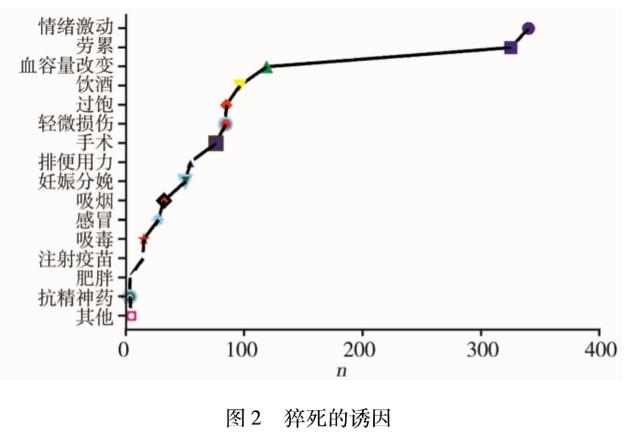 研究发现,猝死的诱因为 情绪激动(26%)、劳累(25%)、血容量改变(8.95%),其次为饮酒、过饱、轻微损伤等。