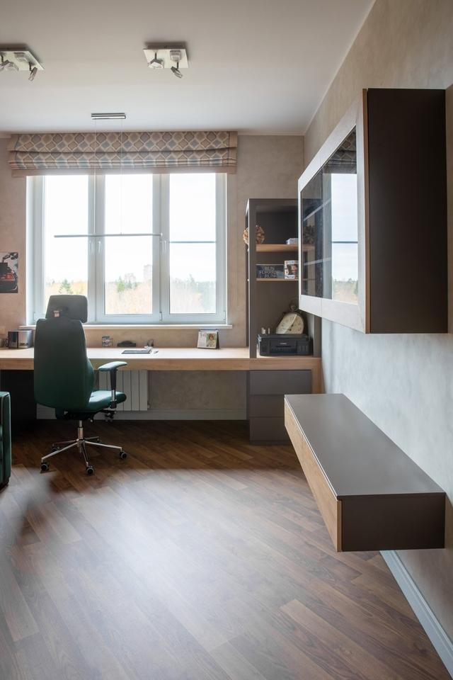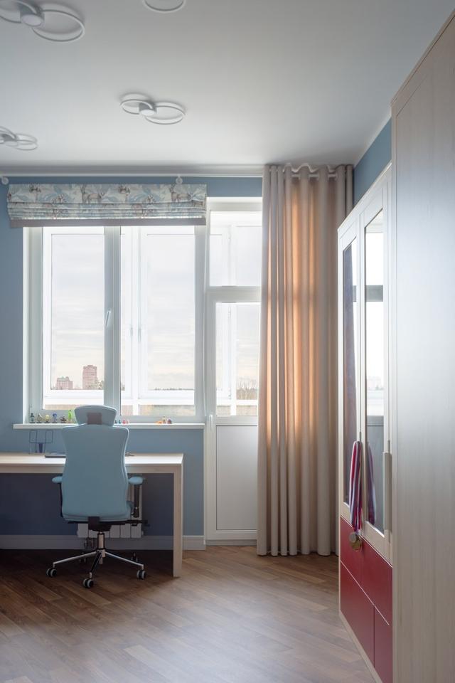儿子现在还在上小学,毕竟学习为主,靠着阳台的窗户,将采光最好的地方留给了书桌,不想要买书桌的,就让师傅打就好了,连着墙面的收纳柜,局部留空使用也更加的方便。