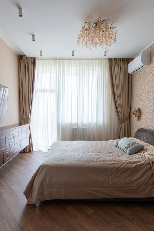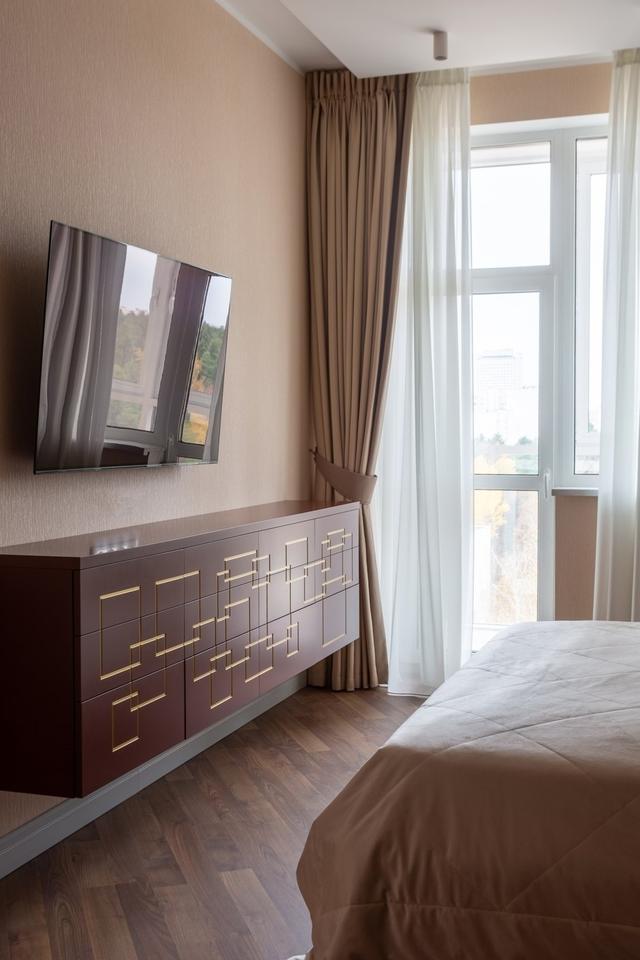 毕竟是十年前的装修,卧室稍显有点老气,但整体十分的洁净,床尾的地方还专门增加了悬空柜和挂壁式电视机。回头墙面都刷大白,就会显得更加的清爽。