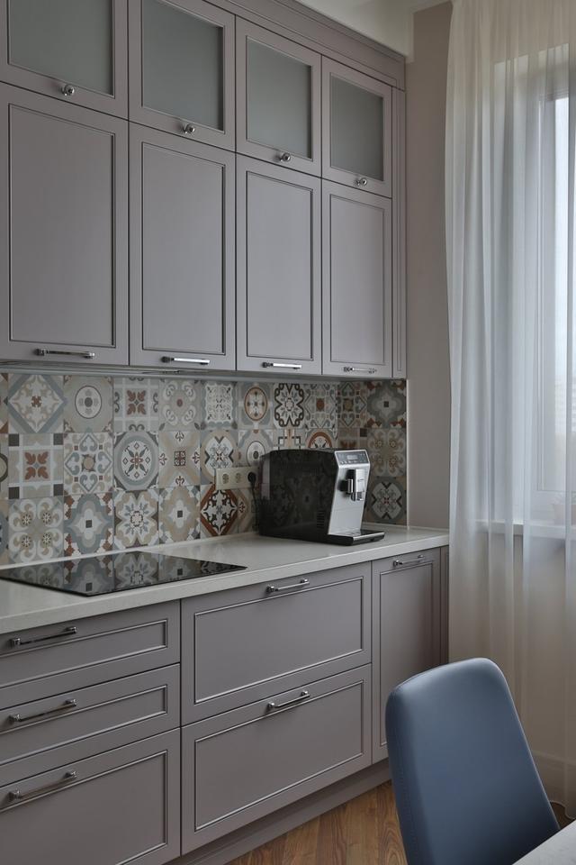 客餐厨开放式布局,互动性强,厨房呈L型靠墙走,整面的吊柜装到顶,层高比较高的,可以考虑跟他家一样做个分层,这样收纳会更加的省心省力。不要忘了提前确定电器的尺寸和位置哟!
