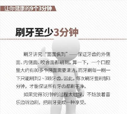 3分钟时间,别说打盹儿,就连开个小差也不够啊,不过呢,科学研究显示,只要长期坚持以下9个“3分钟原则”,你就可以从短短的3分钟里收获意想不到的健康!刷牙至少3分钟、每天腹式呼吸3分钟……为了健康,都学起来