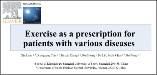 由上海体育学院运动科学学院和淮南师范大学体育系的专家共同发表的《26种人类疾病的运动干预指导方案》,刊登在《运动与健康科学》(JSHS)英文版上,研究人员通过对26种疾病的运动干预证实,运动可对疾病的预防和康复发挥积极作用。