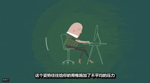 最常见的坐姿是弯着背并下塌肩膀,这个姿势会给你的脊椎施加不平均的压力。 日积月累,它会磨损你的腰间盘,使一些关节和肌肉过度劳损,而保护骨骼的肌肉一旦失去作用,你的每一个动作,都是在直接伤害骨骼。