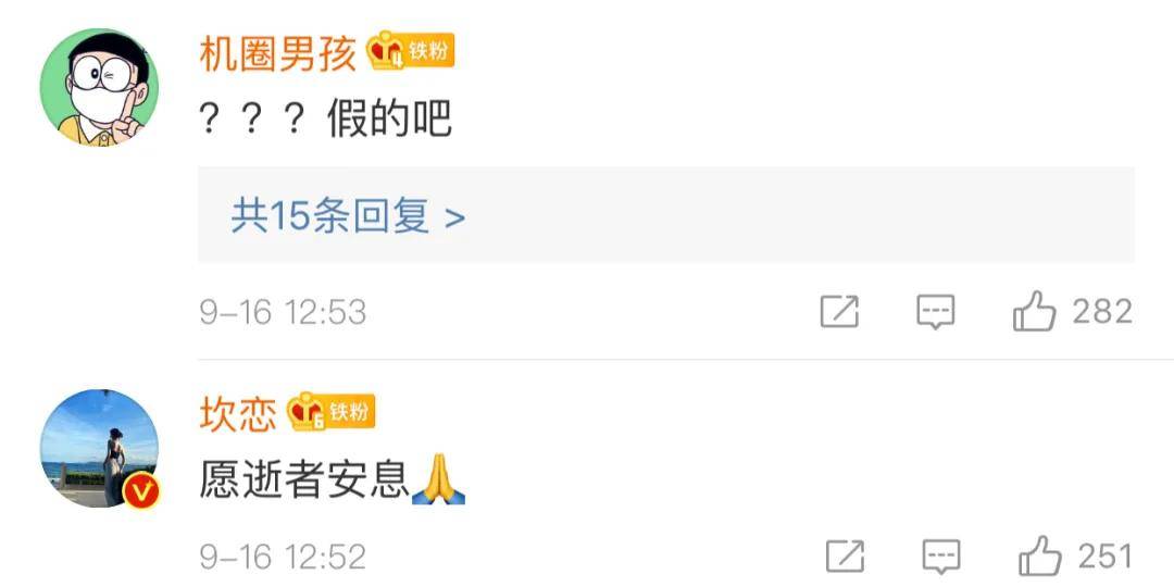 李荣浩也难掩震惊,表示:“我真的不敢相信 这么好的人 朋友一路走好 ”。