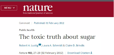 2012年2月,发表在国际顶级学术刊物《Nature》杂志的一篇题为《公共卫生:糖的毒性真相》(Public health: The toxic truth about sugar)的文章指出:糖就像烟草和酒精一样,而且糖的危害远在脂肪和卡路里之上。