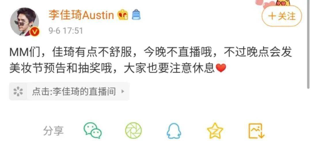 就连一年直播389场、几乎不休息的李佳琦,今年也多次因病停播。 即使敬业到极致的人,在病魔面前,也不得不低下头。