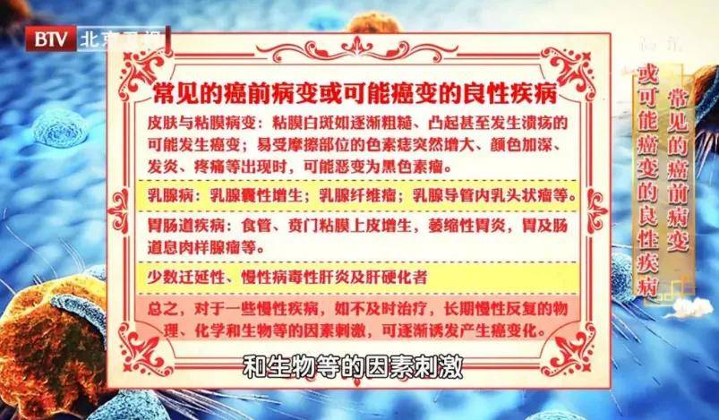 1. 皮肤与黏膜病变。黏膜白斑如逐渐粗糙、凸起甚至发生溃疡的,可能发生癌变;易受摩擦部位的色素痣突然增大、颜色加深、发炎、疼痛等出现时,可能恶变为黑色素瘤。