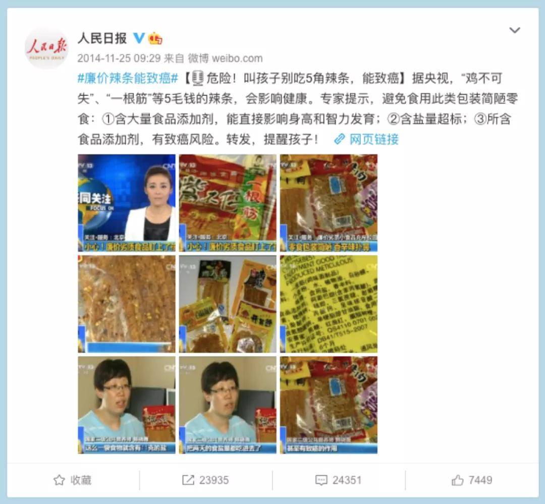 其实早在2014年,央视新闻、人民日报微博就曾曝光过:廉价辣条能致癌! 暗访辣条制作现场:太恶心!