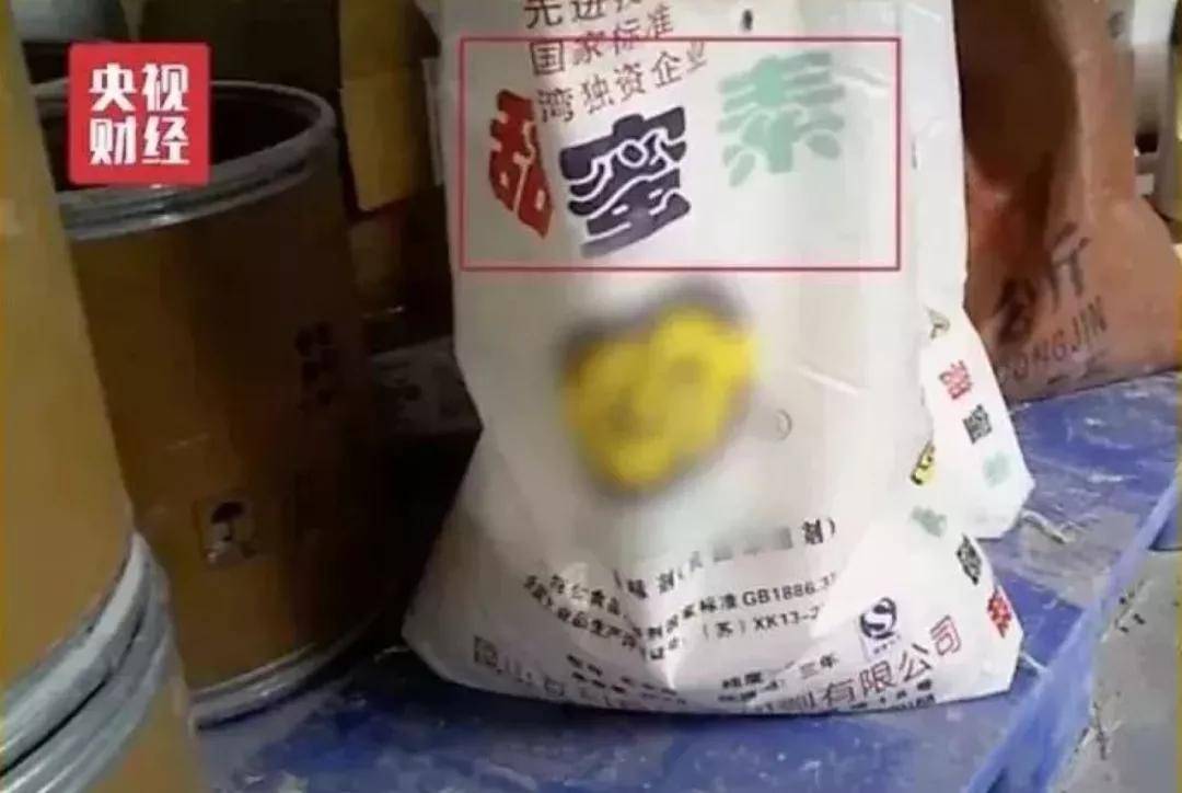 除了面粉,就是各种调味用的添加剂和着色剂。 记者又来到另一家辣条生产厂家,走进一看,地面上堆满了各种辣条。