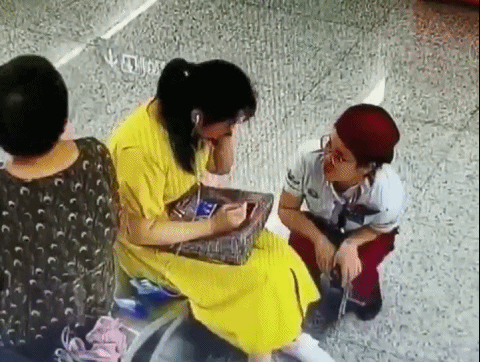 工作人员过来,一句没问,只是一把抱住这个伤心欲绝的女孩,不停轻拍她的后背。 耐心的安慰下,女孩平静了下来。
