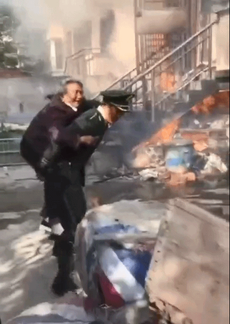 刚放下老人,他一个转身又返回火海。 被救下的奶奶心系他的安危,却只能急得直跺脚。