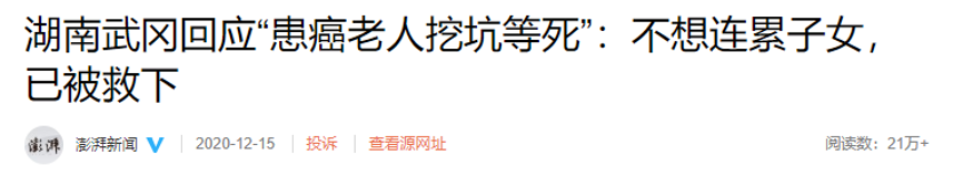 不久前一则“身患绝症老人挖坑等死”的新闻刺痛了很多人的心。