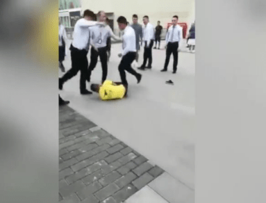 2018年8月,深圳福田区卓悦汇,因为要阻止外卖员乘坐手扶梯,保安挥舞着两米长的棍棒对外卖小哥展开围攻,3名外卖员受伤严重,其中一人出现脑震荡症状,一人被打断两条肋骨,断骨穿透肺部。 2020年12月14日,南宁一小区的保安用叉流浪狗流浪猫的钢叉直接锁住外卖小哥的喉咙,让他无法动弹,对其造成极大的侮辱。