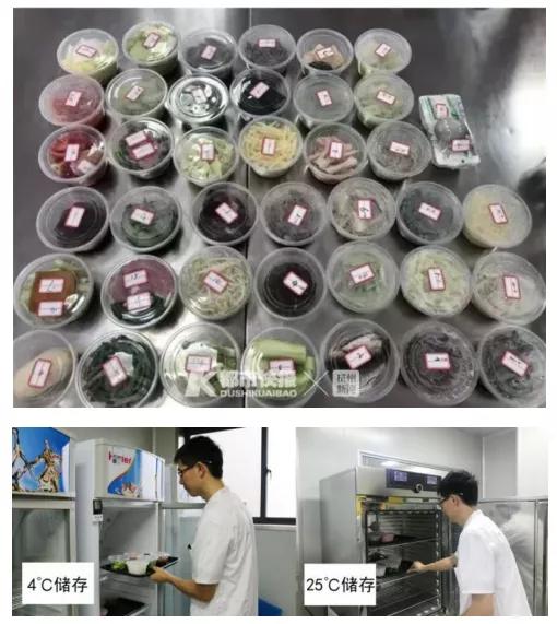 宁波食检院实验人员采集刚出锅的菜肴(肉菜、半荤半素、素菜和凉拌菜4种),分别放置于4℃环境(模拟家用冰箱)及25℃环境(模拟常温环境)中。