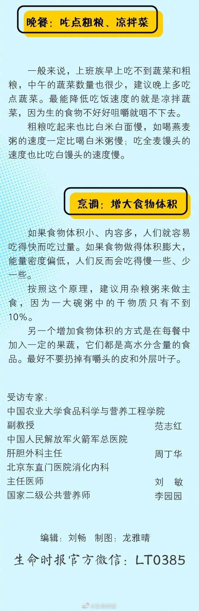 【一口饭到底嚼几下,才算细嚼慢咽? [吃瓜群众]】细嚼慢咽能延长用餐时间,刺激饱腹神经中枢,反馈给大脑“我已经饱了”的信号,让人较早出现饱腹感而停止进食。那么细嚼慢咽的标准是_________?答案:一口饭嚼15下以上。吃饭快的人,一开始可能一口饭嚼4~5次,可以慢慢延长到10次,再延长到15次、20以上[吐舌]