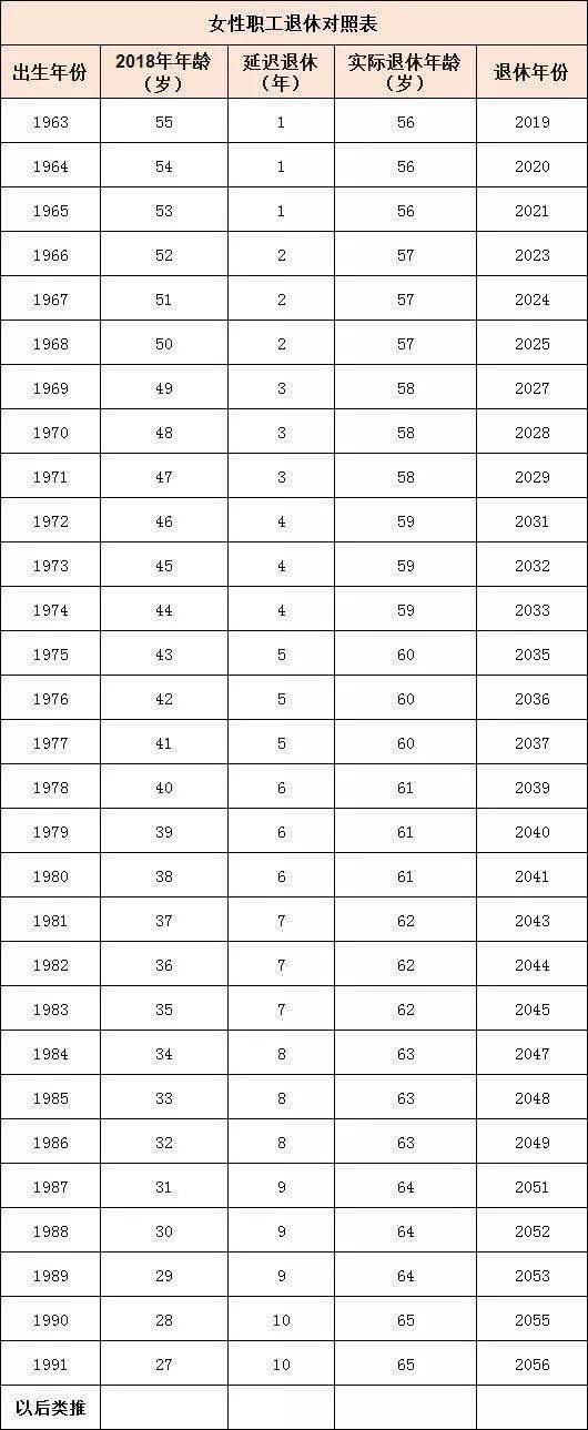▼ 女性职工退休对照表 ▼ 65岁!!!作为90后的我看完,延迟退休只有一种感觉:这个班真的是要活到老、上到老!