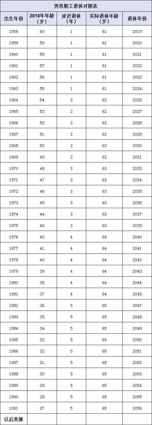 网上根据延迟退休的大体政策,推测出了这份退休时间表