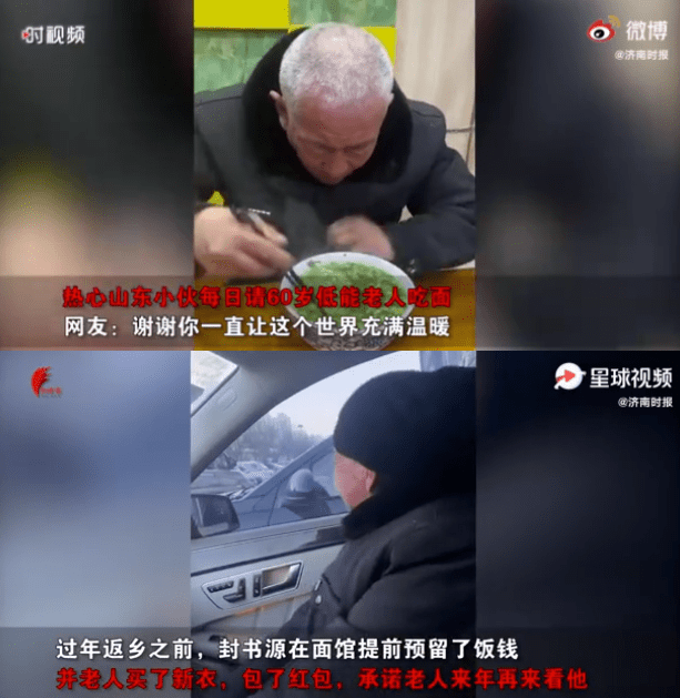 走之前他在面馆给老人预留了饭钱。
