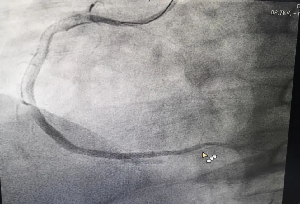 M老师在昏迷中,在各种仪器设备的强力生命支持条件下,由心血管介入团队对其完成了急诊冠脉造影检查——心脏右侧冠状动脉完全堵塞,伴有大量血栓形成。这是急性心肌梗死,需要马上手术开通血管。