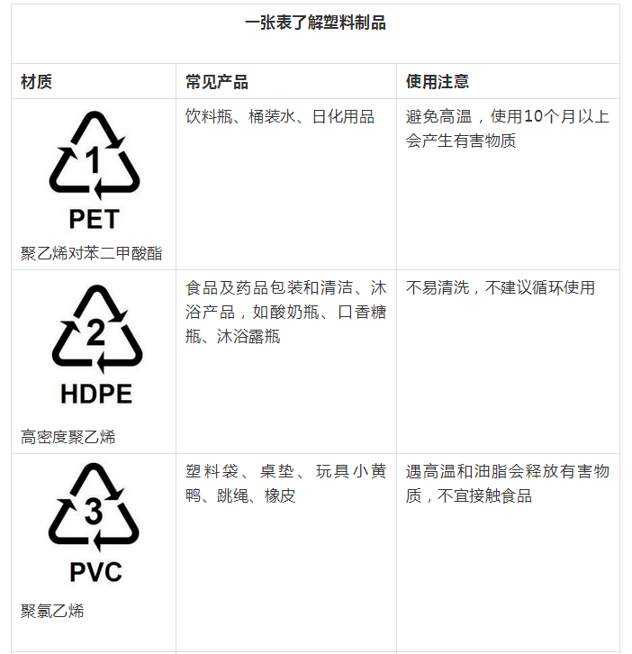 我们的生活似乎离不开塑料:水杯、餐具、包装袋…… 塑料是个大家族,一般会在产品底部用1~7的数字标明“身份”。虽然用了这么多年,但多数人并不了解它们:有的塑料怕热,有的塑料怕油,还有的塑料不适合儿童接触……