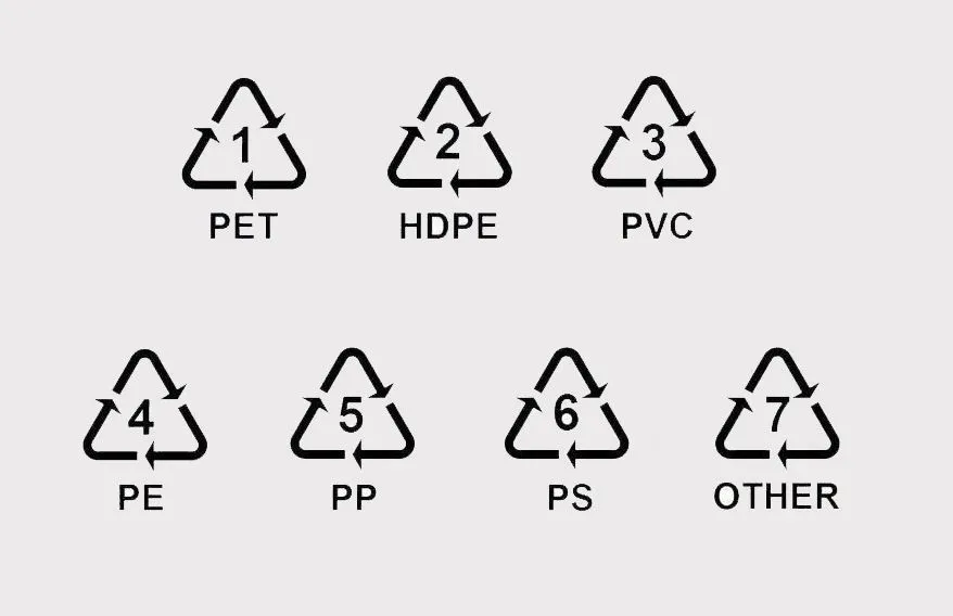 塑料底部的数字是什么意思? 在塑料产品的底部通常有个三角形,中心的数字表示编号,下方的英文表示塑料材质名称。