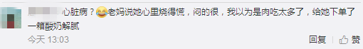 新闻下的网友评论很有意思,大概可以分为两类,“敷衍的关心”和“对老年病的无知”: “老妈说她心里烧得慌,闷的很,我以为是肉吃太多了,给她下单了一箱酸奶解腻。“